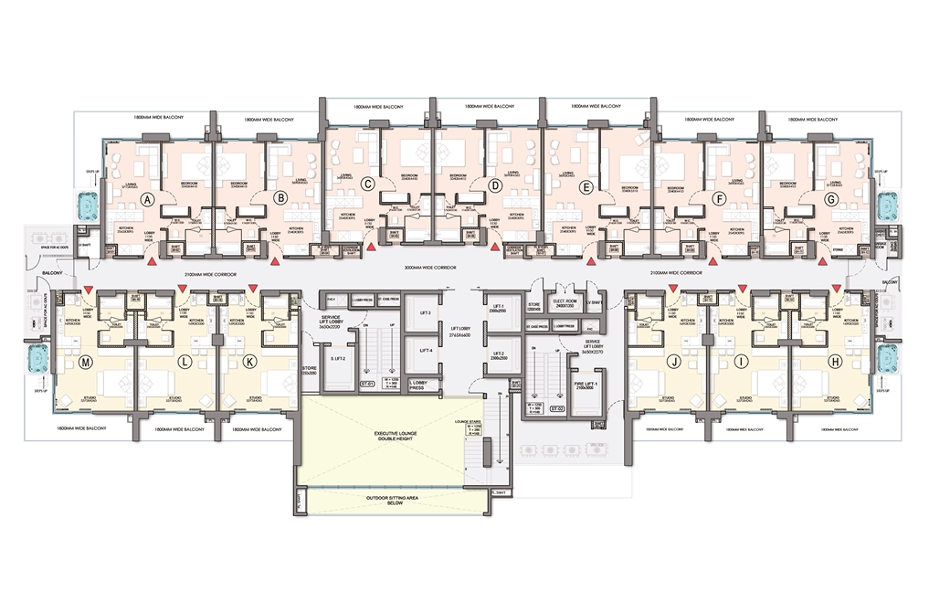 Themed lounges on alternate floors